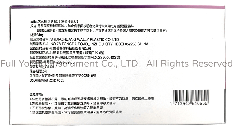 醫療器材許可證所載品名:大友 檢診手套 (未滅菌)(無粉)